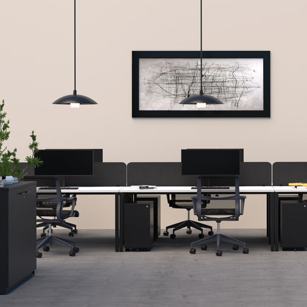 AVERO 4 POD BACK TO BACK FIXED HEIGHT DESK 1800X800MM BLACK FRAME CLASSIC OAK TOP