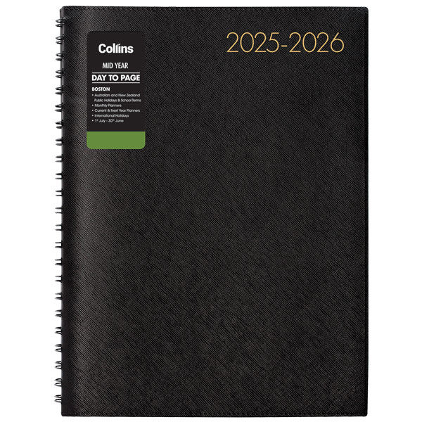 COLLINS BOSTON MID YEAR APPOINTMENT DIARY A4 DAY TO PAGE WIRO 2025/2026