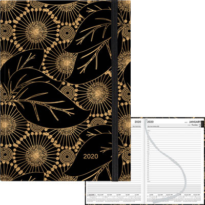 COLLINS DIARY ORNAMENTAL FLOURISH A51 BLACK & GOLD DAY PER PAGE EVEN YEAR