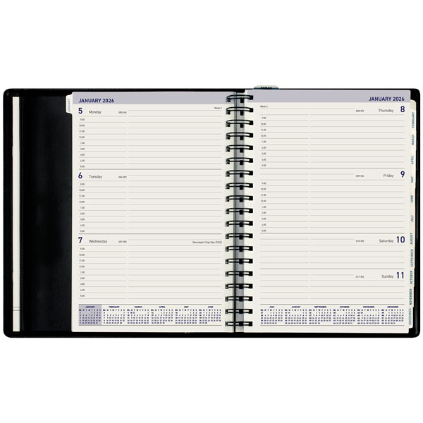 COLLINS DIARY PORTFOLIO BLACK WEEK TO VIEW WIRO TABBED EVEN YEAR