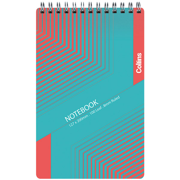 COLLINS REPORTERS NOTEBOOK 7MM RULED WIRO BOUND W127 X L200MM 100 LEAF ASSORTED