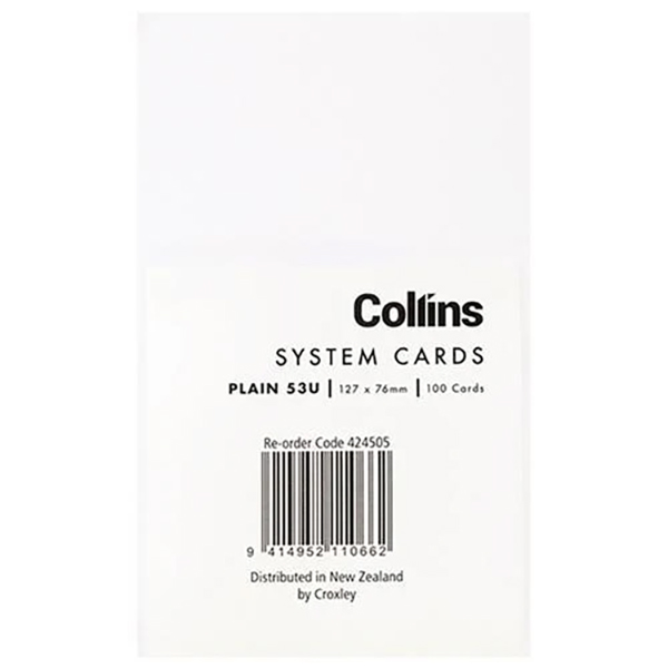 COLLINS SYSTEM CARDS 53U PLAIN W5 X L3IN WHITE PACK 100