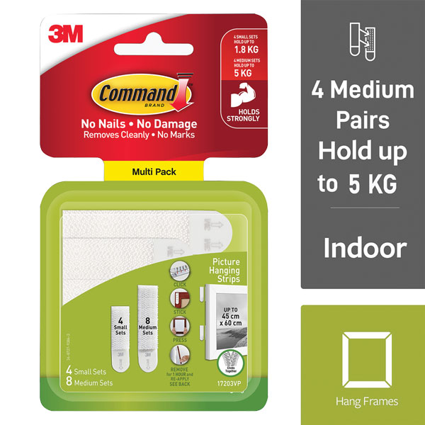 Command picture hanging strips make decorating quick and easy. One click tells you picture hanging strips are locked in and holding tight. Best of all, when you are ready to take down or move your pictures, they come off cleanly