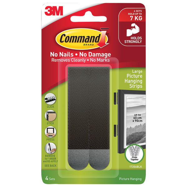 COMMAND PICTURE HANGING STRIPS LARGE BLACK PACK 4