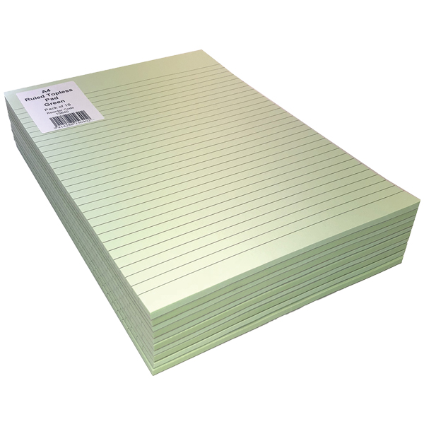 DIRECT PAPER TOPLESS PAD 7MM RULED A4 GREEN PACK 10