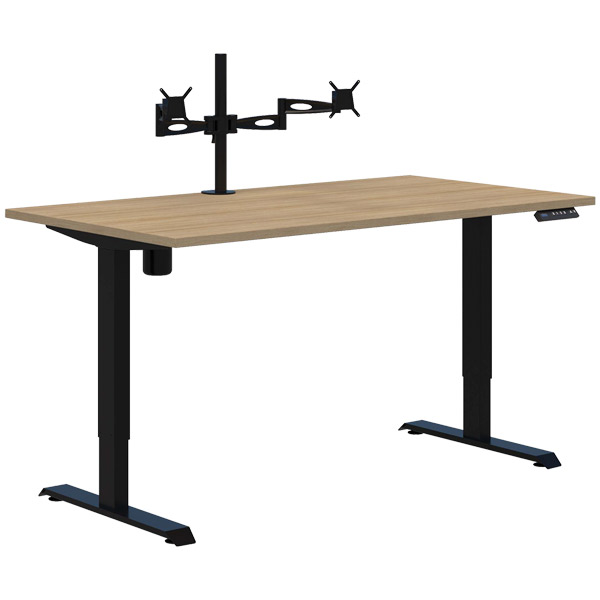 DUO II ELECTRIC DESK W1800 X D800 X H695-1145MM BLACK FRAME CLASSIC OAK WITH METALICON DOUBLE MONITOR ARM BLACK
