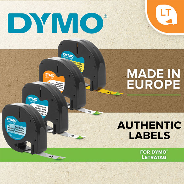 DYMO 2162076 LETRATAG LABELLING TAPE IRON ON 12MM X 2M BLACK ON WHITE PACK 2