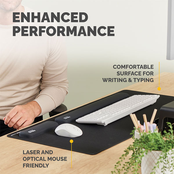 Provides a soft, padded surface for forearms and wrists, improving posture and creating a smooth area for typing, mousing, and writing