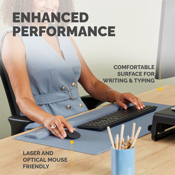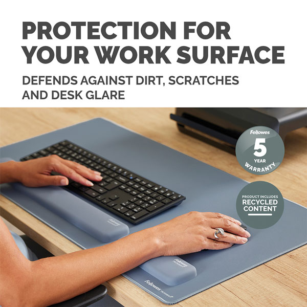 Provides a soft, padded surface for forearms and wrists, improving posture and creating a smooth area for typing, mousing, and writing