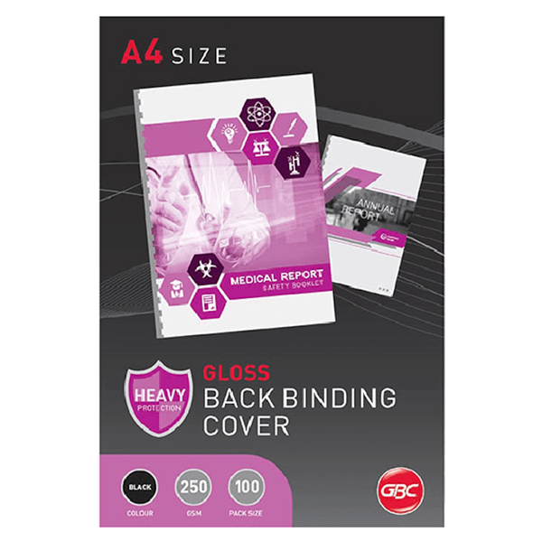 GBC BINDING COVER GLOSS 250GSM A4 BLACK PACK 100