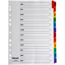 INDICES ESSELTE COLOURED TABS A4 JAN-DEC MYLAR