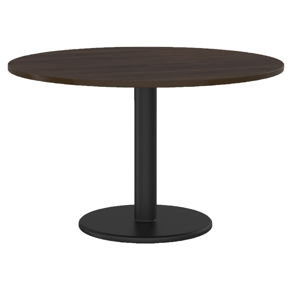 KNIGHT POLO TABLE ROUND BASE D1200 X H730MM BLACK BASE DARK OAK TOP
