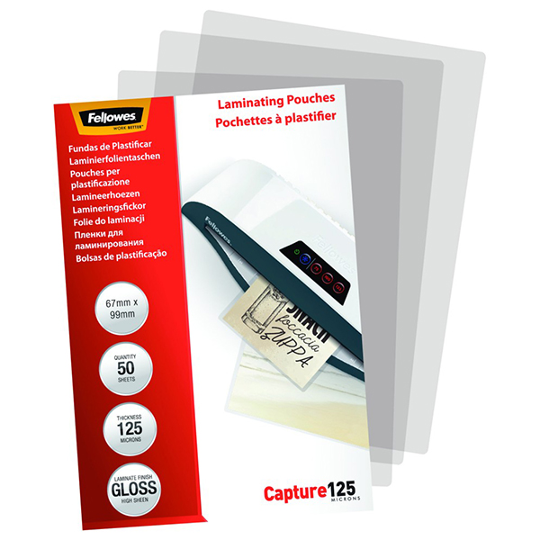 Fellowes laminating pouch card.125 micronsW67 x L99mm