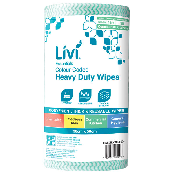 LIVI COMMERCIAL WIPES GREEN ROLL 90 SHEETS