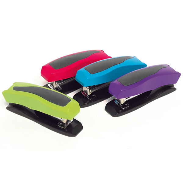 Bright, fun and modern half strip stapler, with sturdy plastic construction and rubber feet to protect desks