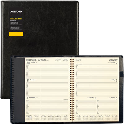 MILFORD DIARY PLATINUM A41 BLACK DAY PER PAGE WIRO ODD YEAR