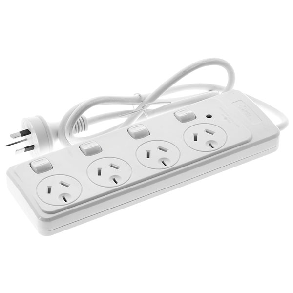 MOKI POWERBOARD 4 OUTLET WITH INDIVIDUAL SWITCHES 1M WHITE