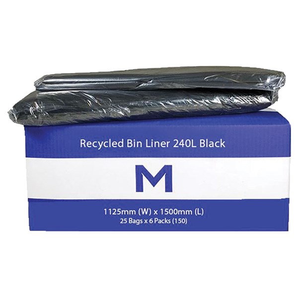 MPH RECYCLED BIN LINER 240L 1125X1500MM 30MU BLACK PACK 25