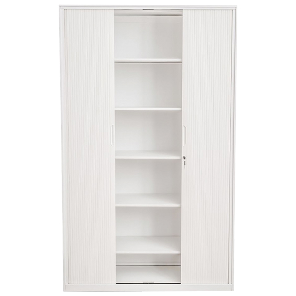OPD OFFICEWARE TAMBOUR 3/ 4 TIER 2 ADJUSTABLE SHELVES W900 X D500 X H1200MM MANNEX WHITE
