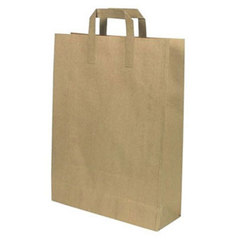 These large brown kraft carry bags have a flat fold handle and can hold up to 10kg.