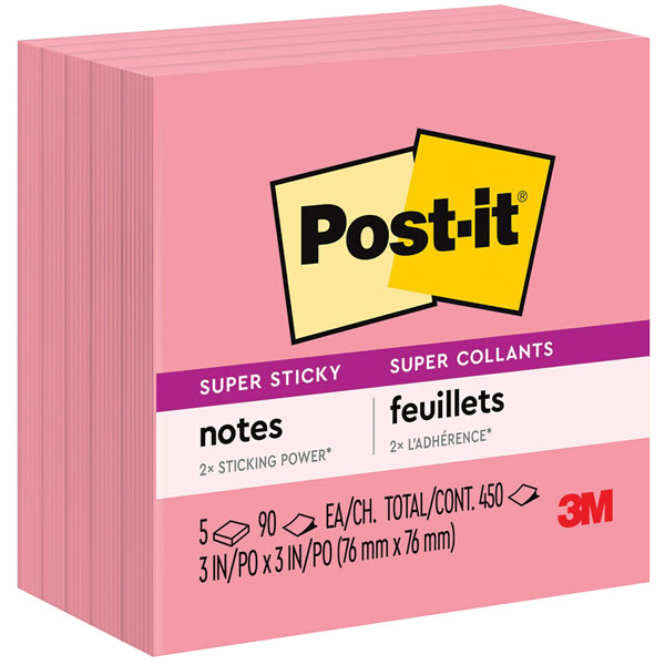 POST-IT 654-5SSNP SUPER STICKY NOTES 76 X 76MM PINK PACK 5