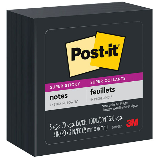 POST-IT 654-5SSSC NOTES SUPER STICKY W76 X L76MM BLACK PACK 5