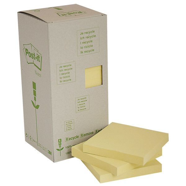 POST-IT 654-RTY RECYCLED NOTES 76 X 76MM CANARY YELLOW PACK 16