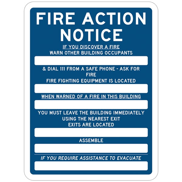 Notice, Fire Action Notice Sign.