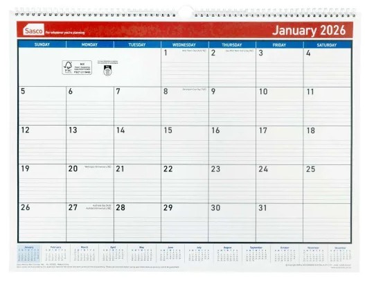 SASCO MONTHLY WALL CALENDAR 530 X 395
