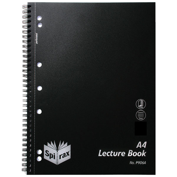 SPIRAX P906A LECTURE BOOK 7MM RULED 7 HOLE PUNCHED WIRO BOUND A4 BLACK
