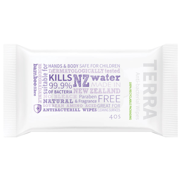 TERRA Anti-bacterial wipes are the perfect way to remove bacteria and leave you with clean hands.