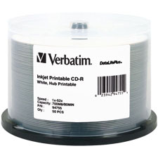 VERBATIM 94755 CD-R 700MB 52X PRINTABLE WIDE SPINDLE WHITE PACK 50