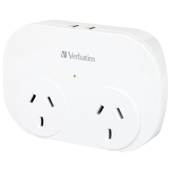 VERBATIM DOUBLE POWER ADAPTER SURGE PROTECTED DUAL PORT USB-A 2.4A WHITE